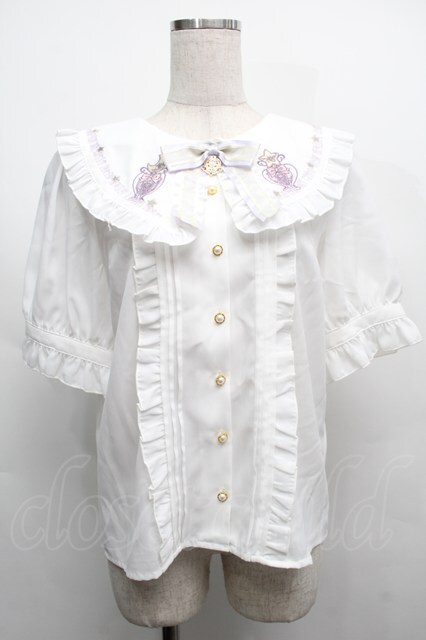 Amavel / Magical Cosmic Cosmetic半袖ブラウス 白 S-25-09-12-043-CA-BL-AS-ZS