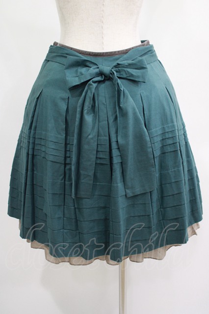 Jane Marple / 配色タックスカート グリーン×グレー H-25-07-02-1012-JM-SK-KB-ZH