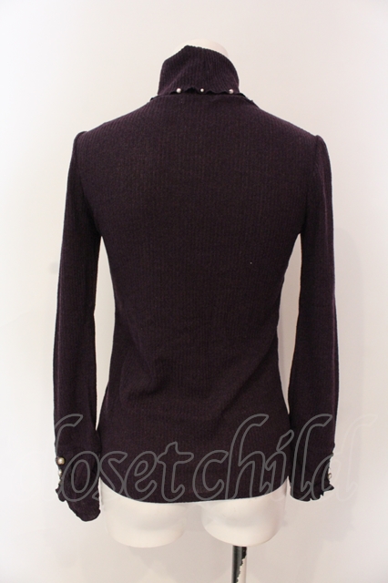 axes femme / はしごレースリブタートルニットソー M パープル O-25-06-23-096-AX-TO-YM-ZT122