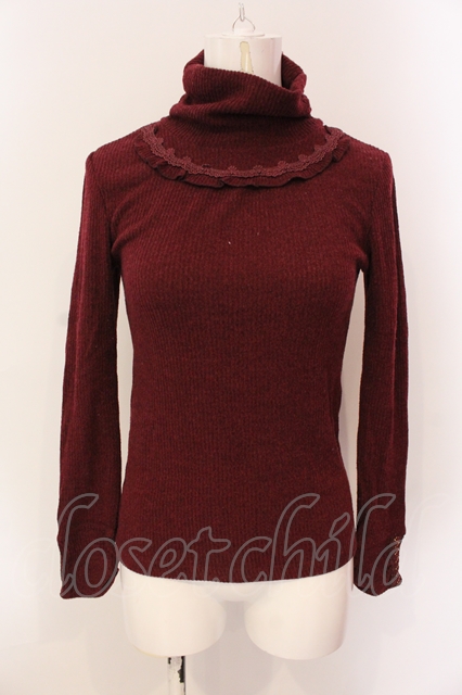 axes femme / ネックレス風ハイネックテレコカットソー M エンジ O-25-06-23-095-AX-TO-YM-ZT122