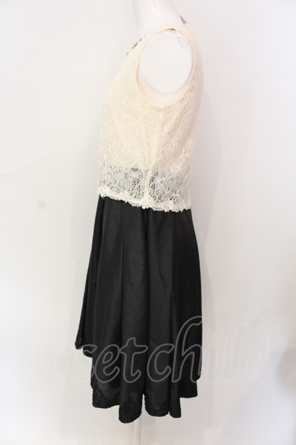axes femme / シャンタン切り替えビジュ襟ワンピース M シロxクロ O-25-06-23-116-AX-OP-YM-ZT148