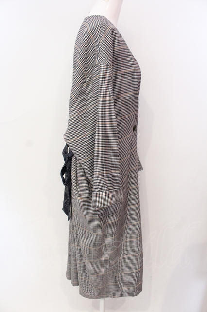axes femme / 千鳥格子ノーカラーガウンコート M グレー O-25-06-23-113-AX-CO-YM-ZT-C003