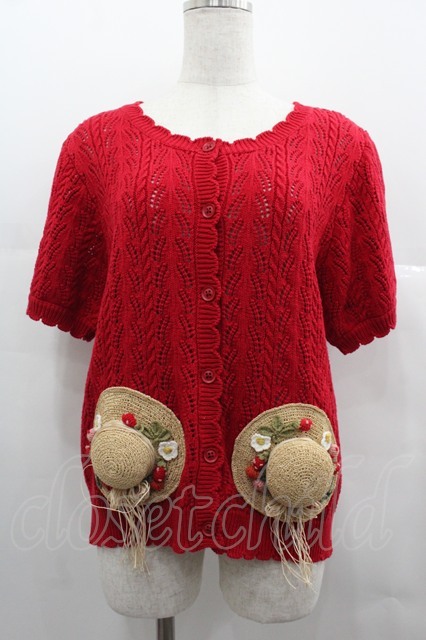 PINK HOUSE / Straw-berry Hatモチーフカーディガン 赤 I-25-06-25-035-LO-TO-HD-ZT063 [戻る]