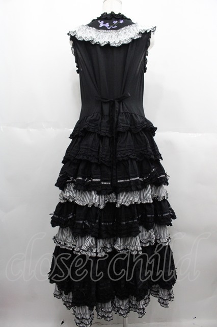 PINK HOUSE / ストライプ使いノースリーブフリルワンピース 黒X白X紫 I-25-06-25-075-LO-OP-HD-ZI