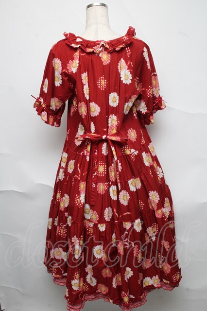PINK HOUSE / ひな菊コサージュプリントミディワンピース 赤 S-25-06-23-034-LO-OP-SA-ZT472