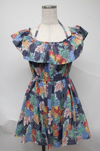 LIZ LISA / フルーツ柄ホルターワンピース 0 紺 S-25-06-23-055-LO-OP-SZ-ZI