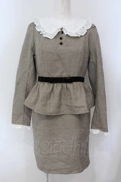 Ank Rouge / 千鳥柄ペプラムワンピース M ブラウン O-25-06-28-041-CA-OP-OW-ZY