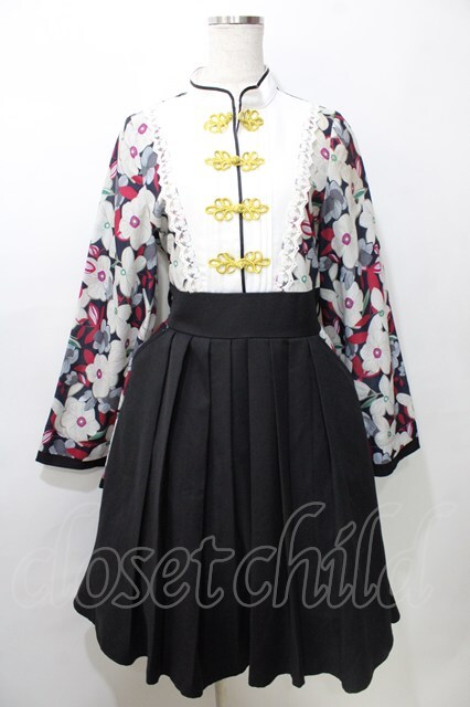 Favorite / チャイナブラウス×袴の和中華折衷袴スカートドッキングワンピース 黒 Y-25-09-11-030-LO-OP-SZ-ZY