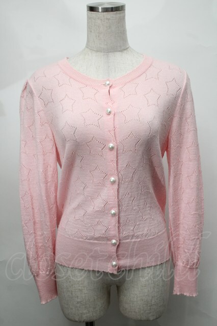Nile Perch / 星透かしカーディガン ピンク S-25-08-21-014-LO-TO-AS-ZT504