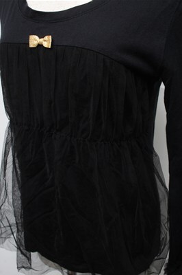 Emily Temple cute / チュール切替トップス 黒 S-25-06-27-039-ET-TO-AS-ZT491