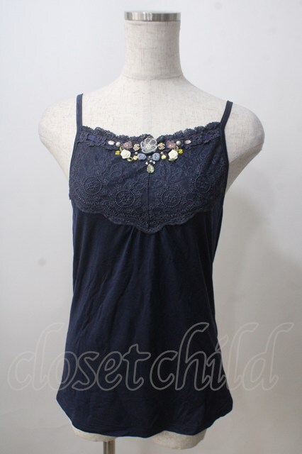 axes femme / バラ×ビジューキャミ 紺 Y-25-07-01-033-AX-TO-SZ-ZY