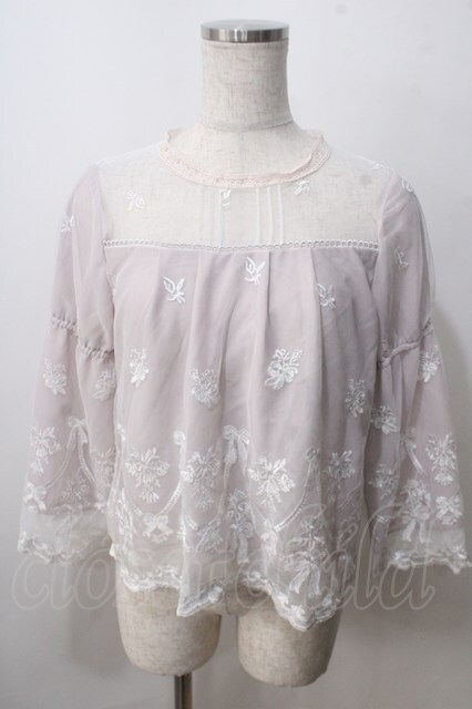 axes femme POETIQUE / リボンブーケレースブラウス M 淡ピンク Y-25-07-01-061-AX-TO-SZ-ZI