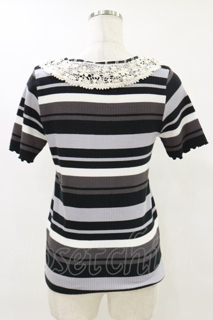 axes femme / レースカラーボーダートップス M ブラック H-25-07-11-039-AX-TO-YZ-ZH