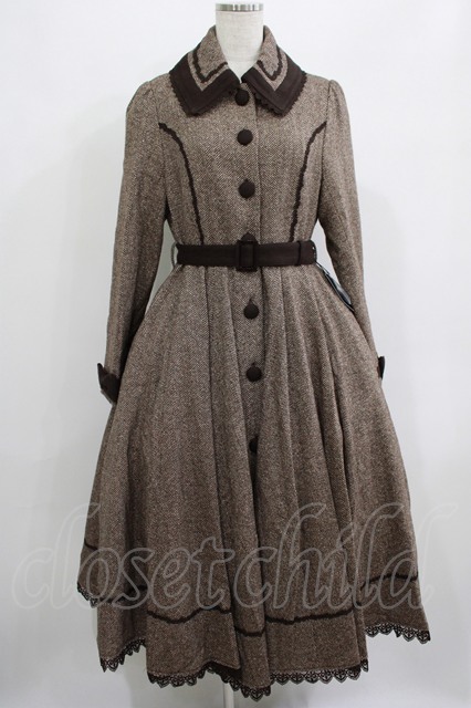 Innocent World / ヘリンボーンコートドレス M ブラウン H-25-07-12-021-IW-CO-NS-ZH