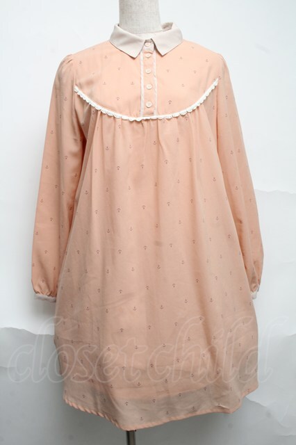 Blue rouge / 錨シフォンワンピース ベージュ S-25-07-01-022-CA-OP-AS-ZT265
