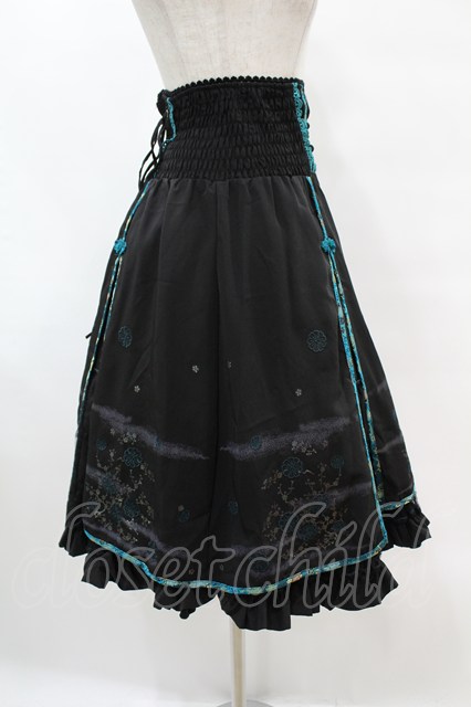 Ozz oneste / 和チャイナレイヤードスカート 黒×緑 H-25-07-12-1031-OO-SK-KB-ZH