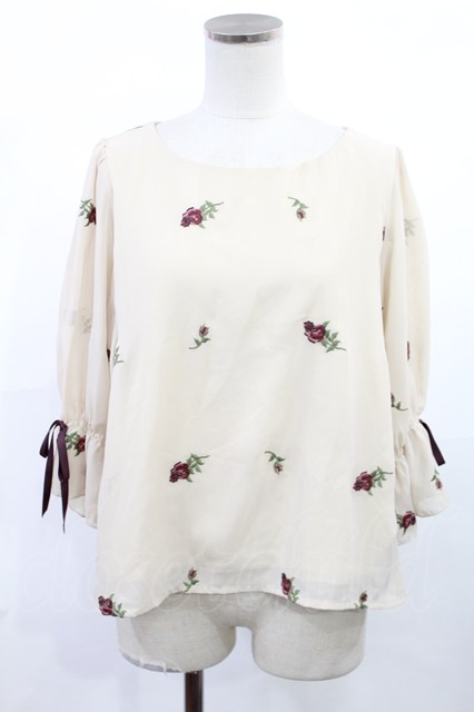 an another angelus / ローズ刺繍シフォンプルオーバー Free IVORY H-25-07-14-1028-CA-TO-NS-ZH