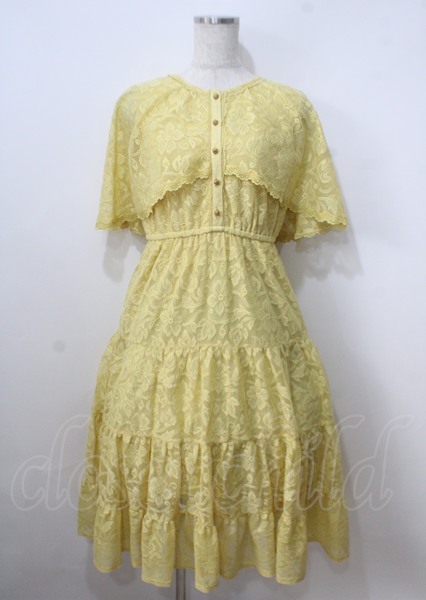 axes femme / ケープ風レースティアードワンピース イエロー Y-25-07-06-043-AX-OP-SZ-ZT475