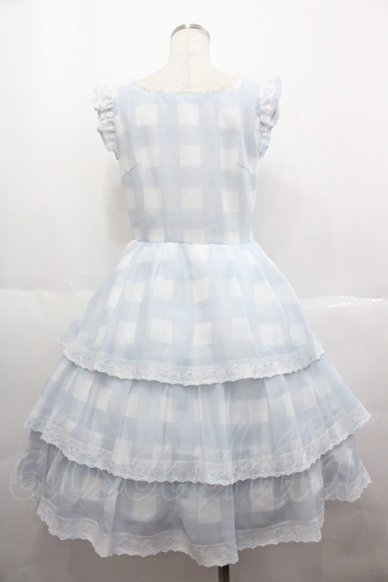 mellfy memory / Fairy love Gingham check ワンピース サックス I-25-07-06-057-LO-OP-HD-ZI