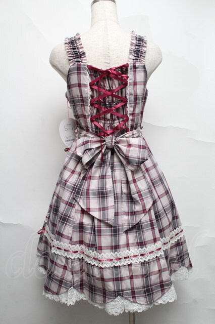 BABY,THE STARS SHINE BRIGHT / 裾スカラップタータンチェックジャンパースカート&リボンコームセット ピンク S-25-07-07-034-BA-OP-AS-ZS
