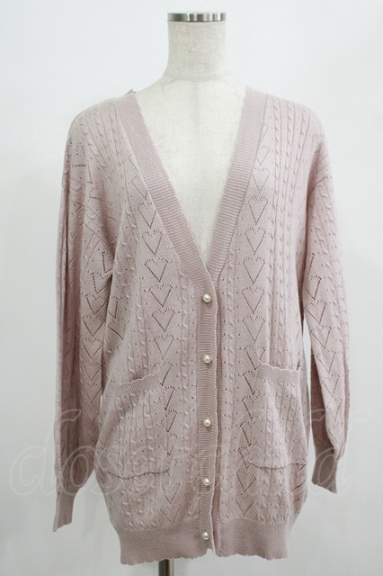Amavel / ハート透かしあみロングカーディガン Fee ピンク H-25-07-17-040-CA-TO-NS-ZH