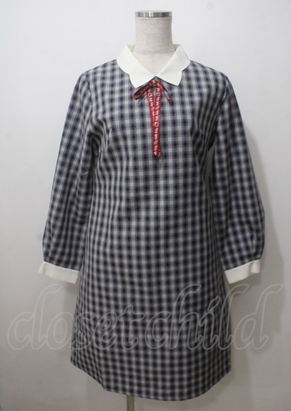 F i.n.t / クレリックチェックワンピース/ハローキティ F 紺 Y-25-07-12-063-CA-OP-SZ-ZI