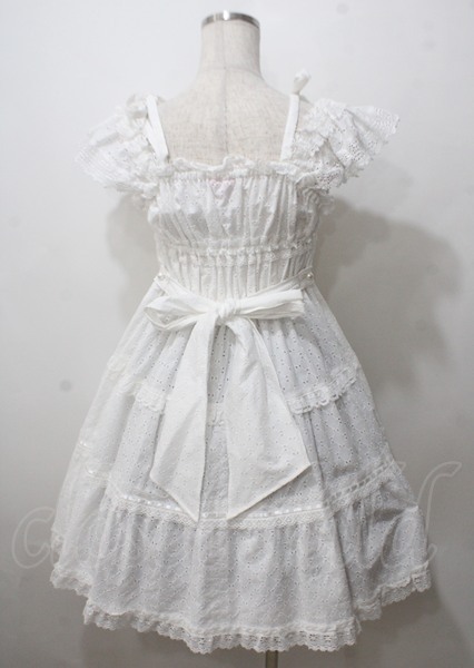 BABY,THE STARS SHINE BRIGHT / Innocent Ribbon Lace シャーリングジャンパースカート 白 Y-25-07-12-068-BA-OP-SZ-ZY [戻る]