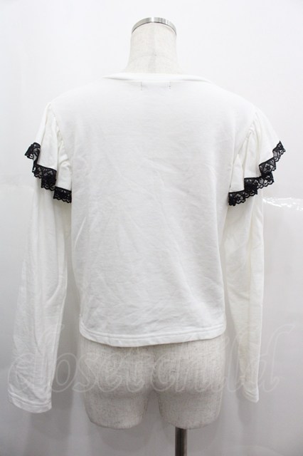 MILK / space catフリルカットソー 白X黒X青 I-25-07-09-032-ML-TO-HD-ZI