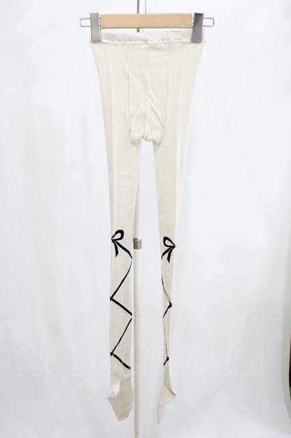axes femme / レースアップリボン柄タイツ 生成り H-25-07-19-1068-AX-ZA-NS-ZH