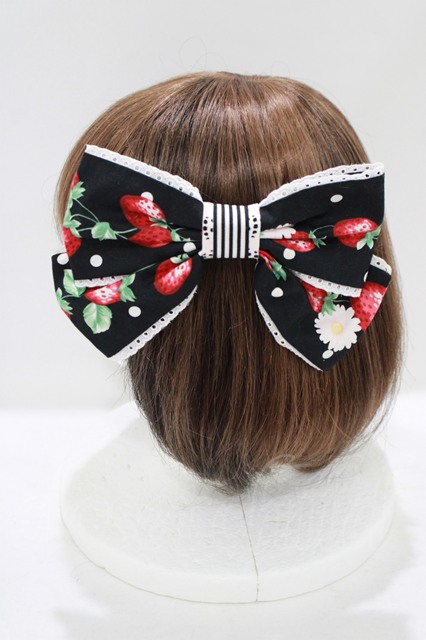 Angelic Pretty / 摘みたていちごSpecialジャンパースカートSetのバレッタ ブラック H-25-07-19-1073-AP-AC-NS-ZH [戻る]