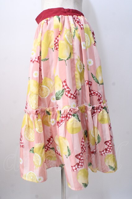 axes femme kawaii / ストライプレモン柄スカート M ピンク Y-25-07-14-126-AX-SK-SZ-ZI