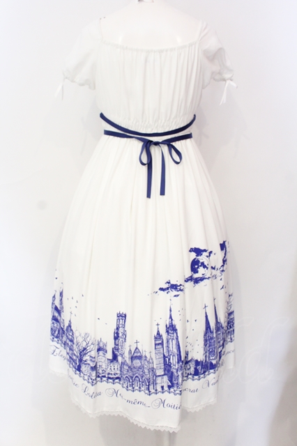 Moi-meme-Moitie / サイレントムーンワンピース(ミディアム丈) ホワイト×ブルー O-25-07-12-055-MO-OP-OW-OS