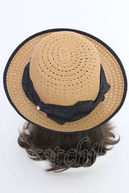 axes femme / リボンストローハット 57.5cm ナチュラルxクロ T-25-07-14-035-AX-AC-YM-ZT-K016