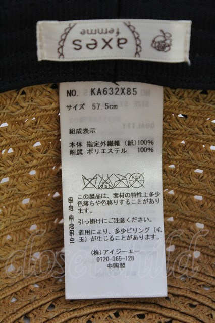 axes femme / リボンストローハット 57.5cm ナチュラルxクロ T-25-07-14-035-AX-AC-YM-ZT-K016 [戻る]