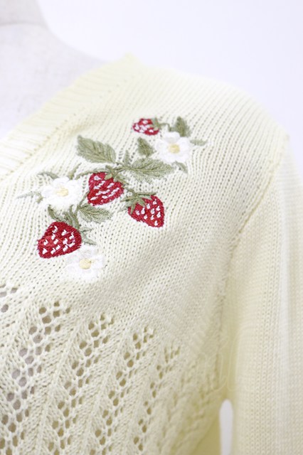 axes femme POETIQUE / ストロベリー刺繍ニットカーディガン M イエロー H-25-07-23-051-AX-TO-NS-ZH