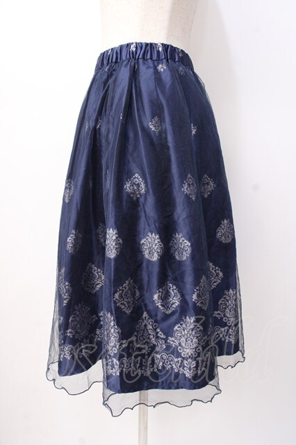 axes femme / オーナメント柄チュールスカート M 紺 Y-25-07-16-049-AX-SK-SZ-ZT479
