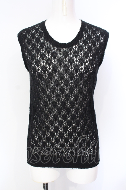 KANEKO ISAO / 透かし編みニットベスト クロ O-25-07-15-070-EL-TO-OW-ZI