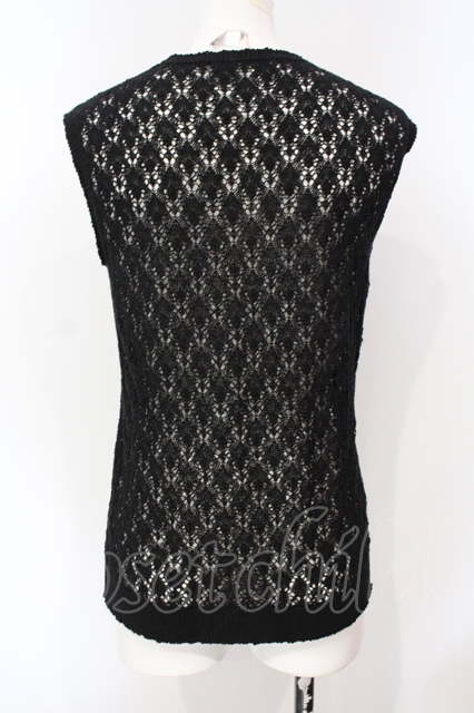 KANEKO ISAO / 透かし編みニットベスト クロ O-25-07-15-070-EL-TO-OW-ZI