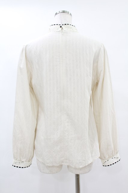 an another angelus / 配色リボンレーススタンドカラーブラウス Free OFF×BK H-25-07-24-1056-CA-BL-NS-ZH