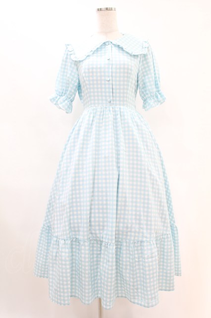 m petit by misako / AM*ギンガムCHKワンピース S サックス H-25-07-24-1030-LO-OP-NS-ZH
