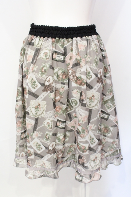 axes femme / レースコラージュ柄スカート グレー O-25-07-17-104-AX-SK-IG-ZT059
