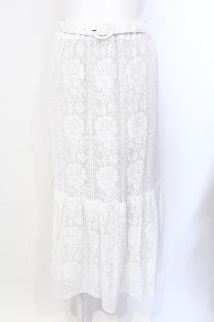 an another angelus / ストライプレース切替ギャザースカート シロ O-25-07-17-069-CA-PA-IG-ZT227