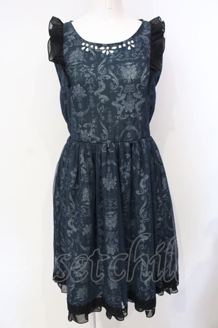 axes femme POETIQUE / クラシックオーナメント柄ワンピース ネイビー O-25-07-17-105-AX-OP-IG-OS