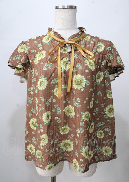 axes femme / 向日葵シアーブラウス 茶 Y-25-07-18-057-AX-BL-SZ-ZT095