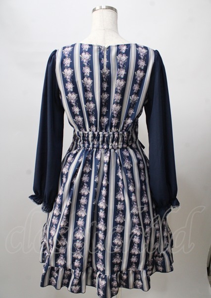 axes femme POETIQUE / ローズストライプ長袖ワンピース 紺 Y-25-07-18-091-AX-OP-SZ-ZT494 [戻る]