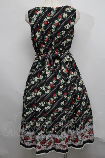 axes femme kawaii / いちご柄ジャンパースカート 黒 S-25-07-17-039-AX-OP-HR-ZI