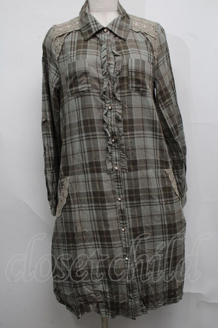 axes femme / レース切替チェックシャツワンピース グリーン S-25-07-17-049-AX-PA-HR-ZI