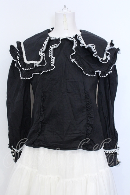 Swankiss / パール配色フリルカラーブラウス F クロ×シロ O-25-07-18-108-CA-BL-OW-ZY