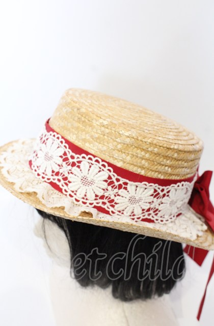 BABY,THE STARS SHINE BRIGHT / BABYハートマーガレット麦わらハット ナチュラル×えんじ O-25-07-19-026-BA-AC-IG-ZT-K011