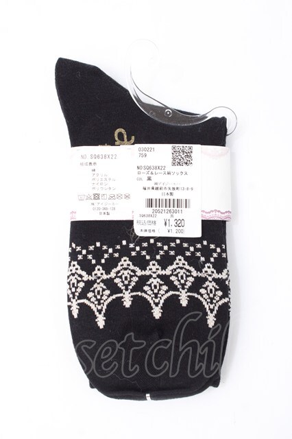 axes femme / ローズ&レース柄ソックス 黒 Y-25-07-21-007-AX-ZA-AS-ZT488